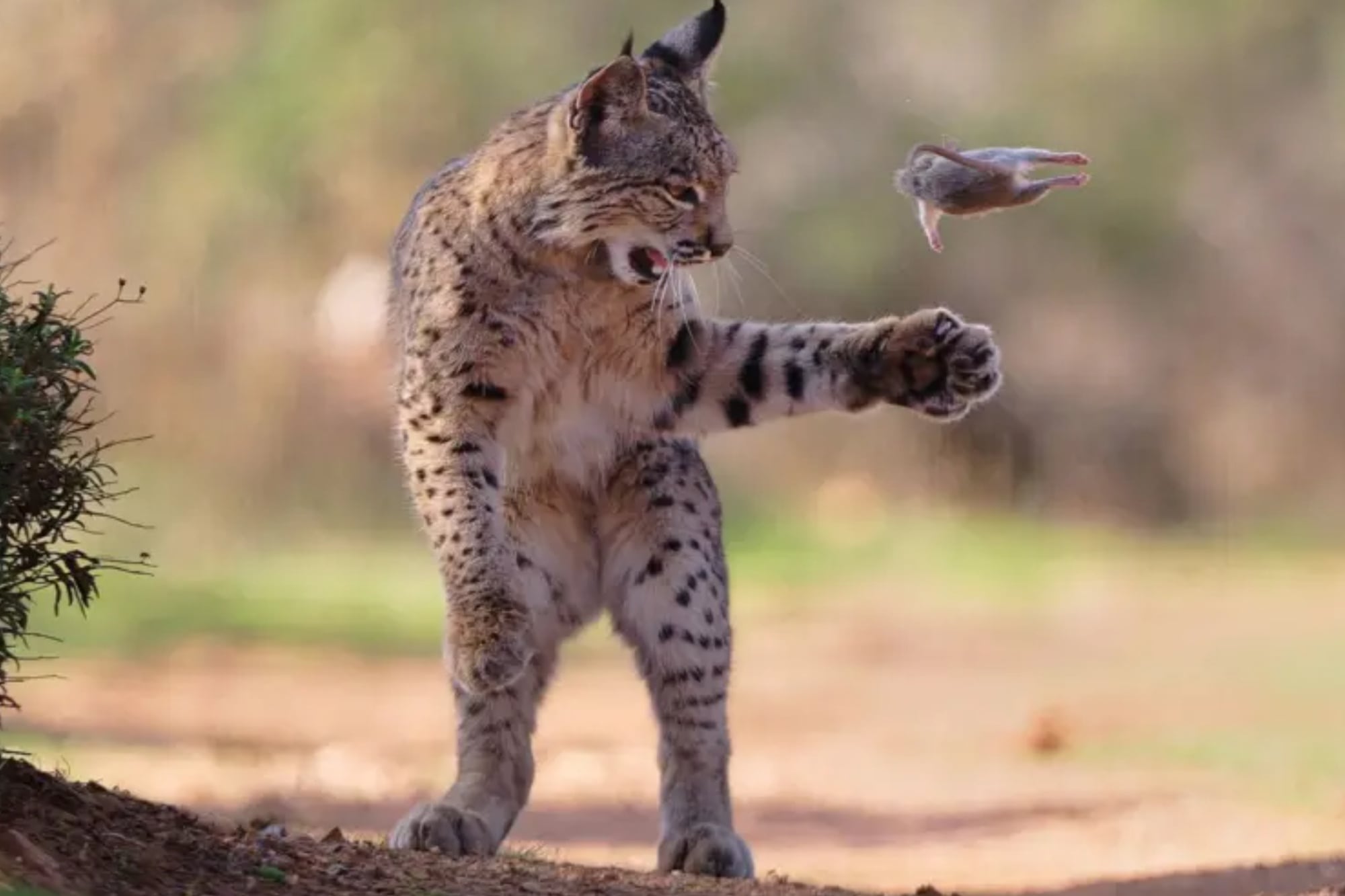 Un joven lince ibérico fue captado jugando con su presa y ganó el premio del público del Wildlife Photographer of the Year 2026. La imagen, titulada 'Roedor volador', destaca la recuperación de esta especie en peligro.