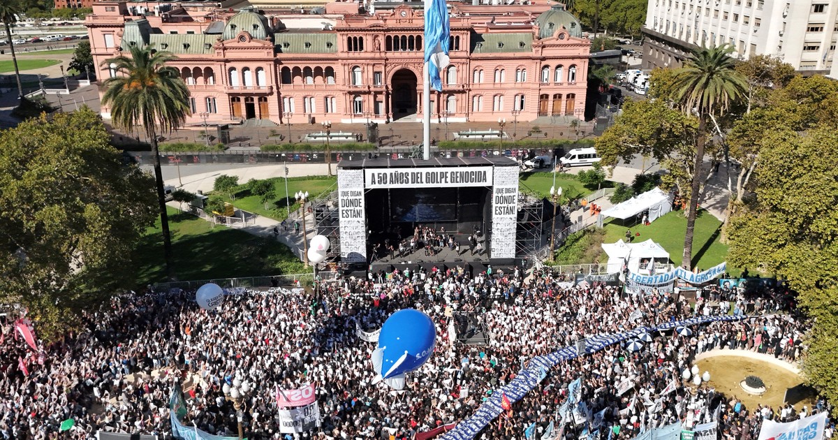 Una multitudinaria marcha conmemoró el 50 aniversario del golpe militar en Argentina, recordando a las víctimas de la dictadura. Familiares y amigos de desaparecidos se congregaron frente a la Casa Rosada.