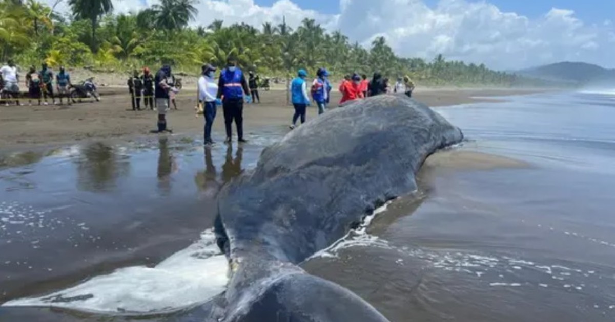 Un cachalote, especie en peligro de extinción, falleció en una playa argentina luego de quedar atrapado en redes de pesca. Las autoridades monitorean el cuerpo del animal.